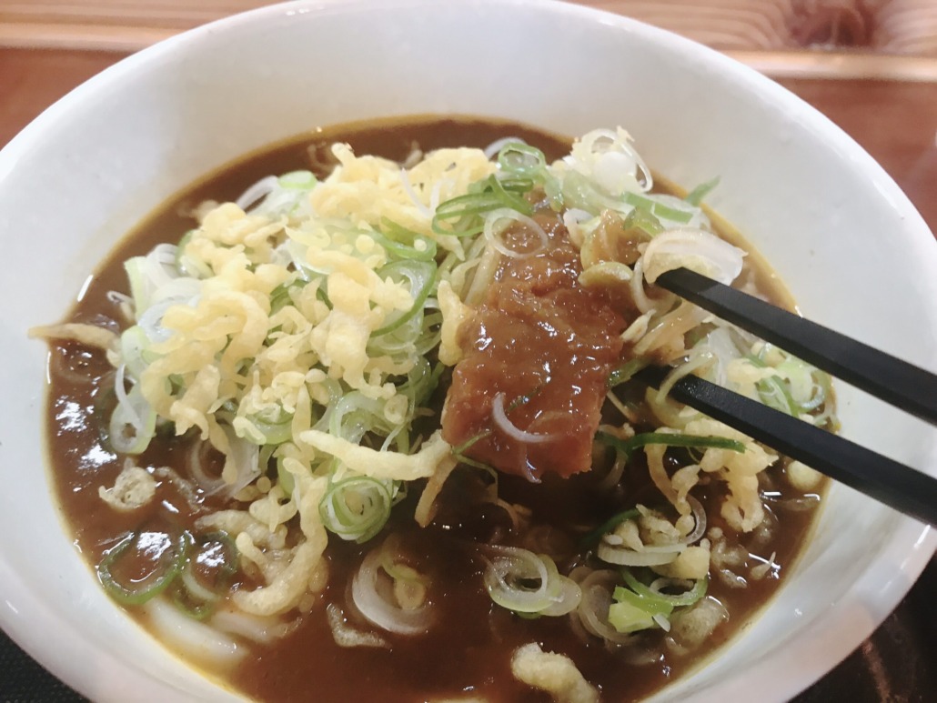 カレースープはカレーライスにかけるようなモッタリ系。揚げたてカツとうどんによく絡みます。