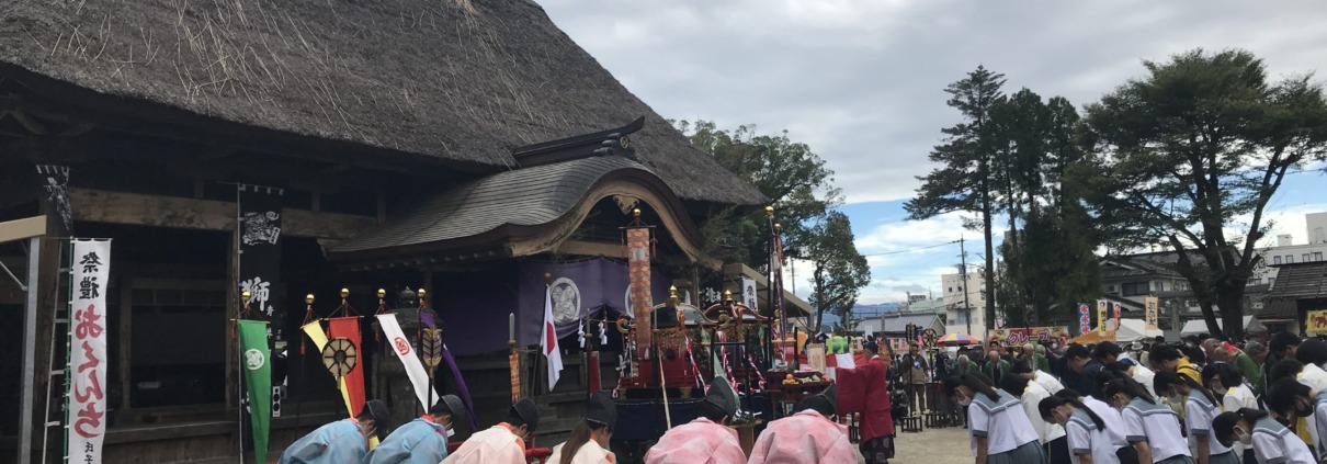 7月4日に発災した豪雨災害により神社も浸水しましたが、おくんち祭り期間中(10月3日~10月11日)神社にて神事が斎行されています。本日10月9日は豪雨災害復興併せ新型コロナウイルス早期退散を願う祈願祭が執り行われました。